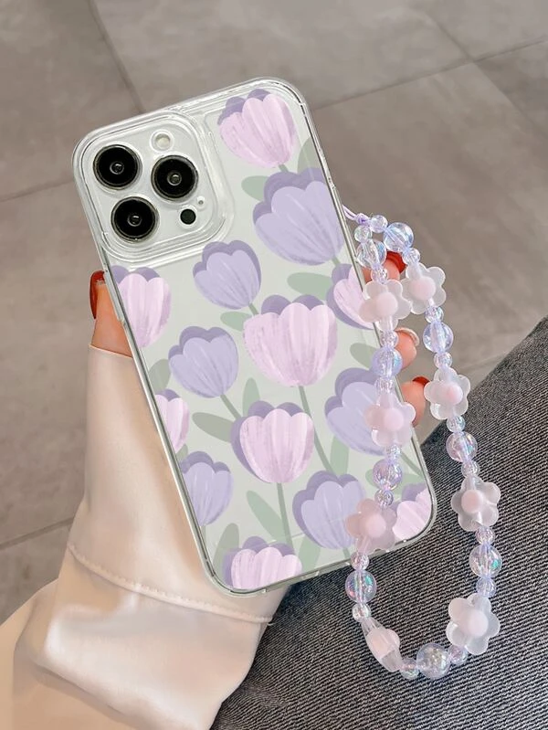 เคส โทรศัพท์ ดอกทิวลิป พิมพ์ พร้อมสายคล้อง c-77