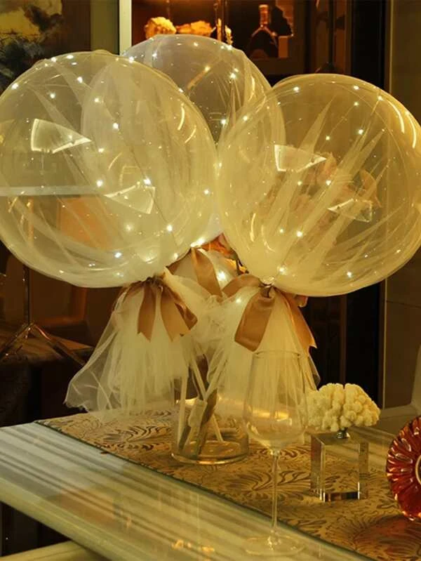 ลูกโป่งตกแต่ง โปร่งใส & ริบบิ้น 1 เซต p-52