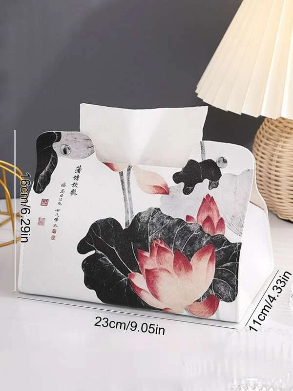 ถุงเก็บทิชชู่ ใบบัว และ ลายพิมพ์ ดอกบัว เนื้อเยื่อ จัดเก็บ สไตล์จีน สำหรับ โต๊ะ 1 ชิ้น nn-62