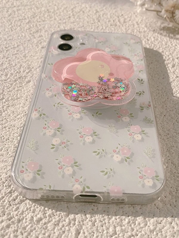 ดอกไม้เล็ก เคส โทรศัพท์ แบบใส พร้อม ดอกไม้ ตัวช่วยถือสมาร์ทโฟน ค-11