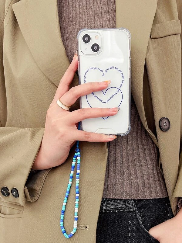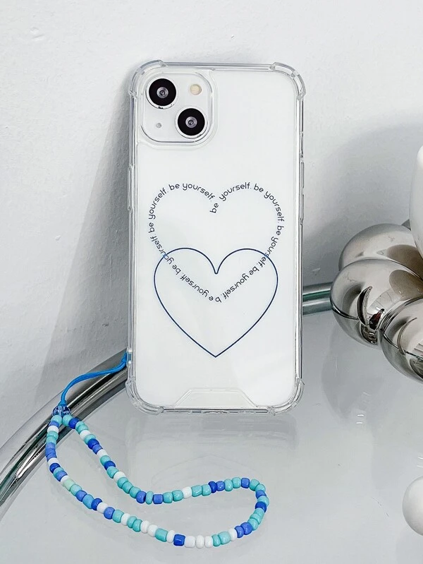 ลาย หัวใจ เคส โทรศัพท์ แบบใส พร้อม ลูกปัด สายคล้องโทรศัพท์มือถือ c-83