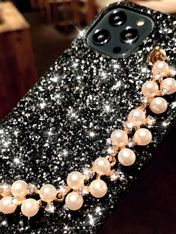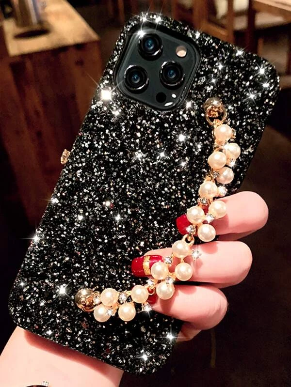เคส โทรศัพท์ ตกแต่ง พลอยเทียม พร้อม สายรัดข้อมือ ลูกปัด ไข่มุก c-89