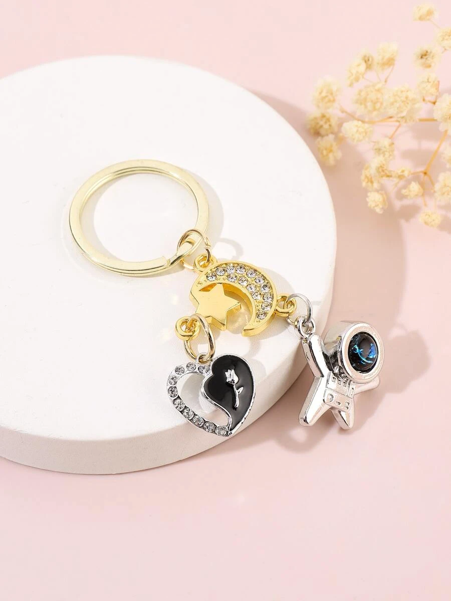 พวงกุญแจ ตกแต่ง พลอยเทียม หัวใจ & นักบินอวกาศ จี้ k-037