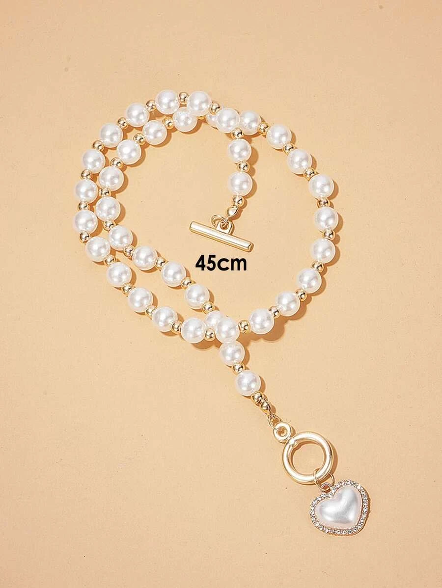 สร้อยคอ ไข่มุก & ตกแต่ง พลอยเทียม เครื่องประดับ หัวใจ kk-21