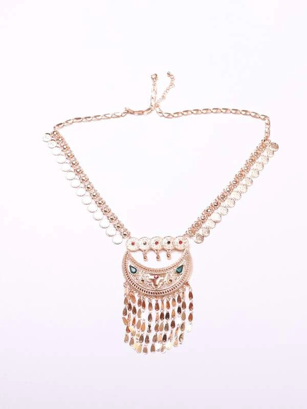 สร้อยคอ จี้ ดวงจันทร์ & พู่โลหะ ตกแต่ง พลอยเทียม kk-223