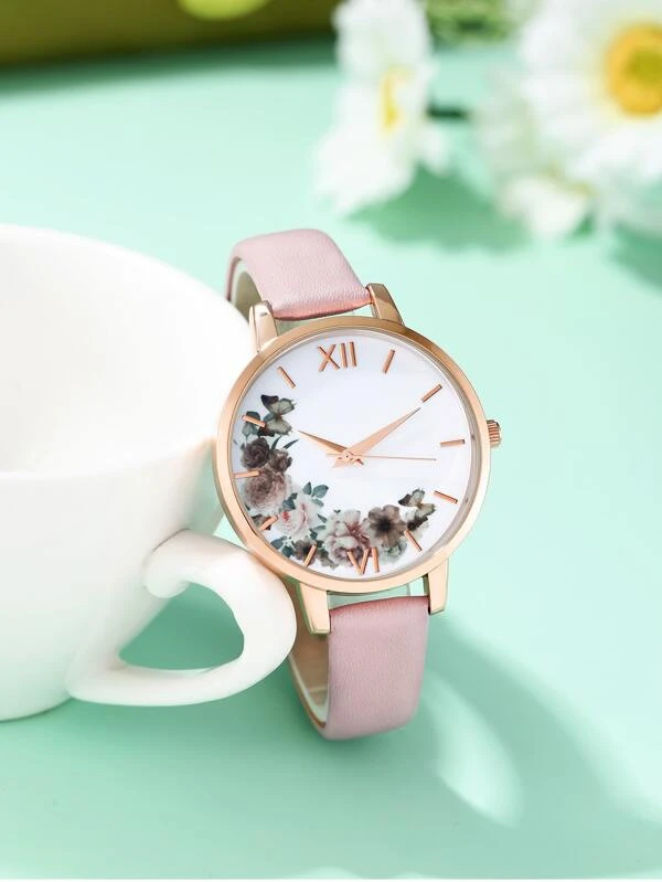 นาฬิกาควอทซ์ ตัวชี้ แบบกลม ลาย ดอกไม้ น-104