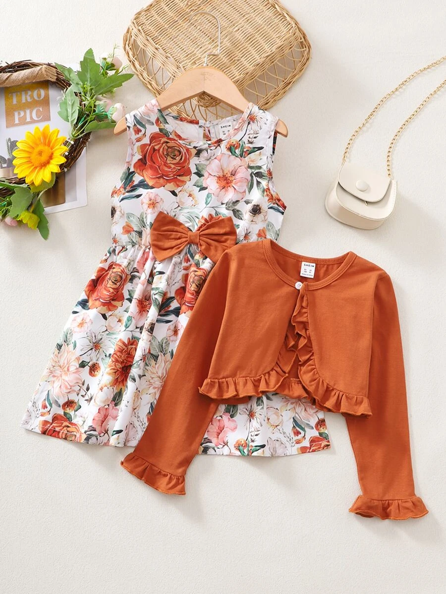 เด็กผู้หญิง เสื้อท็อป นัวเนีย & เดรส โบว์หน้า ลายดอกไม้ทั้งตัว a-22