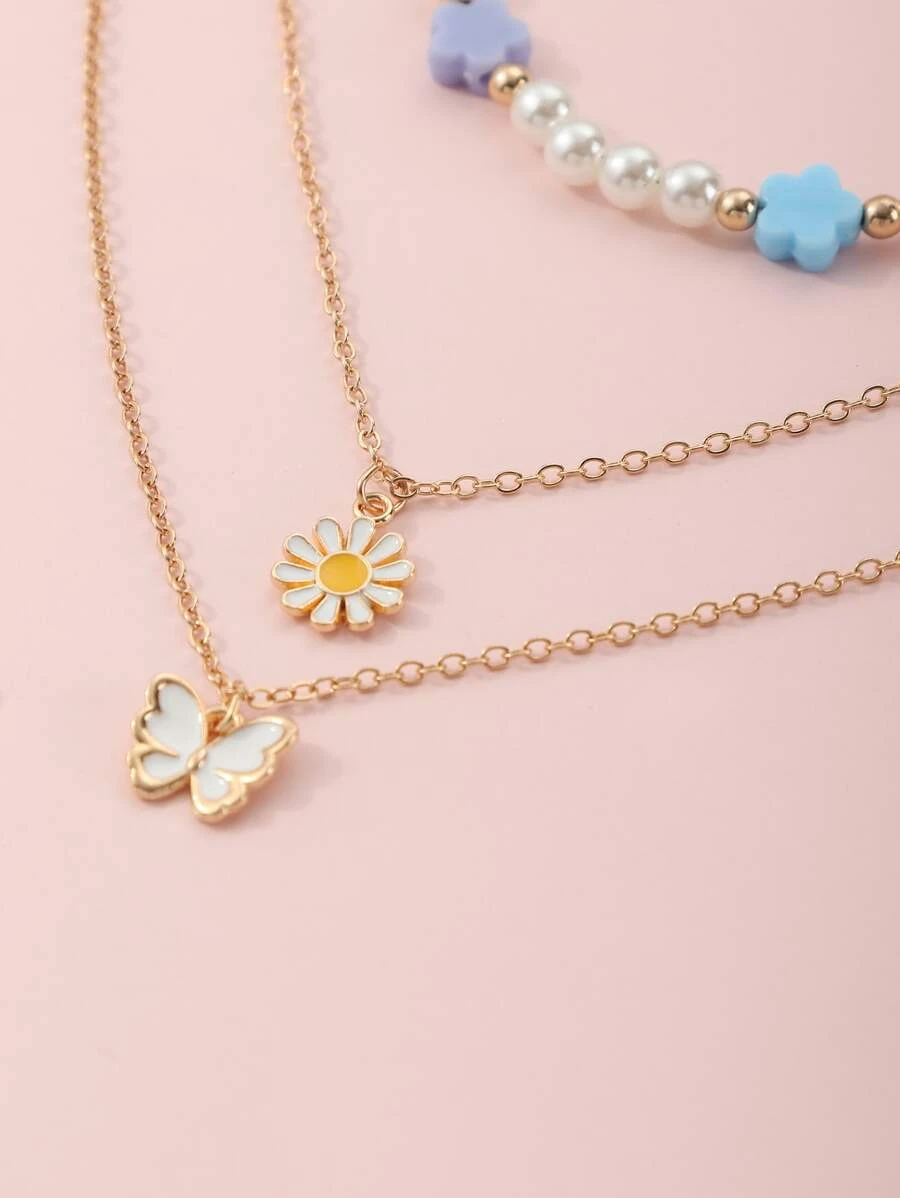 เด็กผู้หญิง สร้อยคอ ผีเสื้อ & เครื่องประดับ ดอกไม้ 3 ชิ้น kk-47