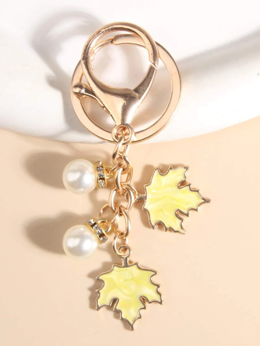 พวงกุญแจ ไข่มุก & ใบเมเปิล จี้ k-046