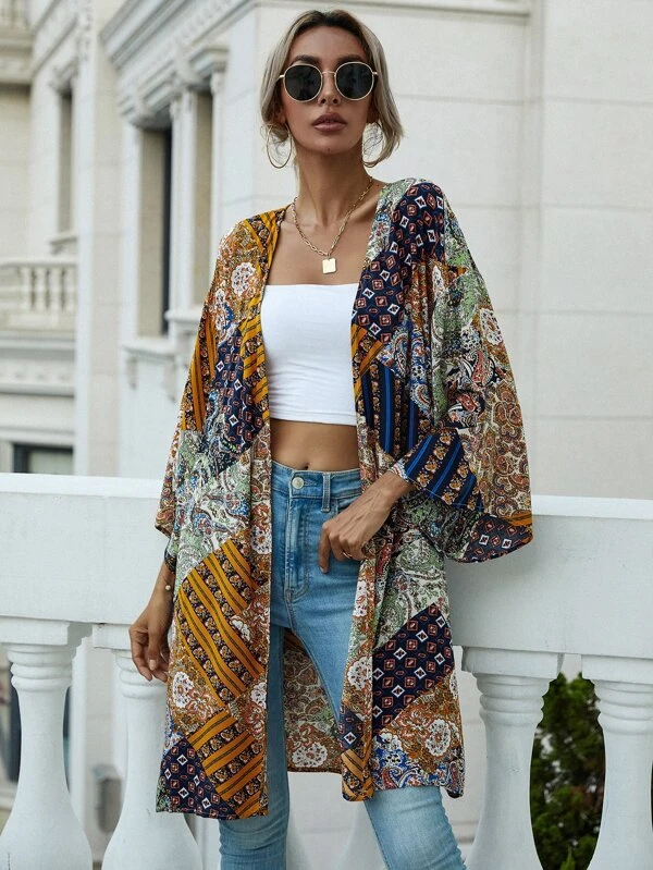 กิโมโน ลายดอกไม้ และ ลายลูกน้ำ สวมด้านหน้า mm-258