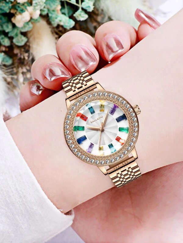 นาฬิกาควอตซ์ ตกแต่ง พลอยเทียม น-0140