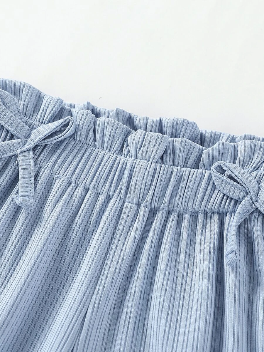 เด็กผู้หญิงวัยหัดเดิน เสื้อแขนค้างคาว เสื้อยืด & กางเกงเอวถุงกระดาษ a-62
