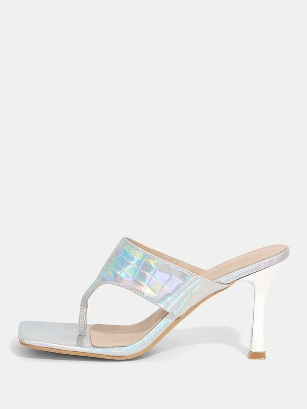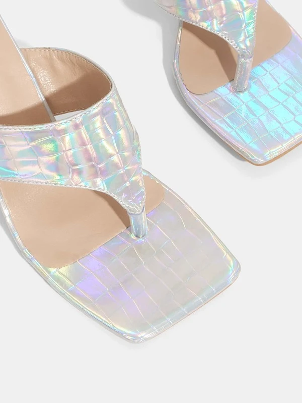 รองเท้าแตะ ทรงธอง โฮโลกราฟิก ลายนูนจระเข้ ส้นปิรามิด l-80