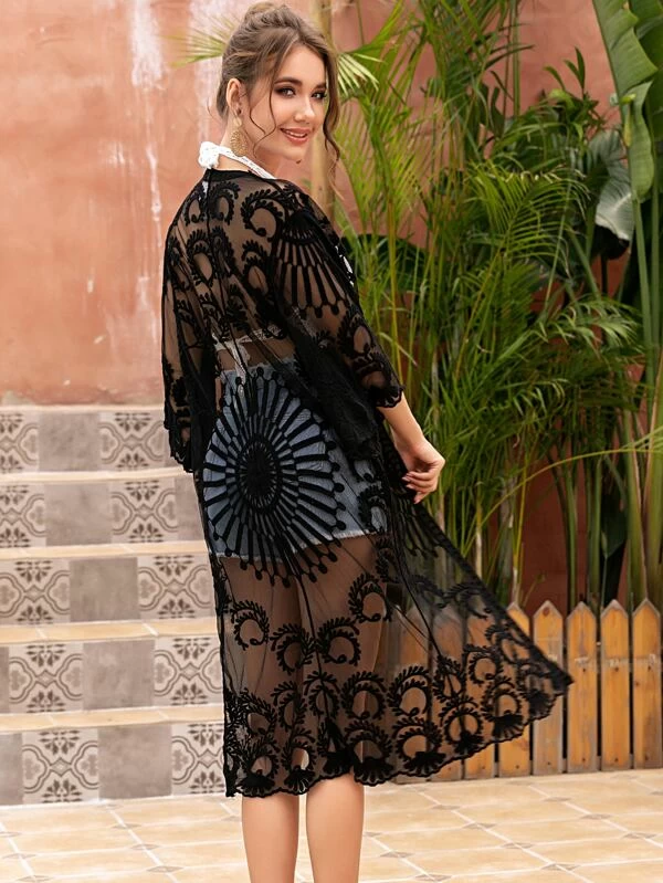 กิโมโน ผ้าโปร่ง ผ้าโปร่งปักลาย ตัวยาว mm-175
