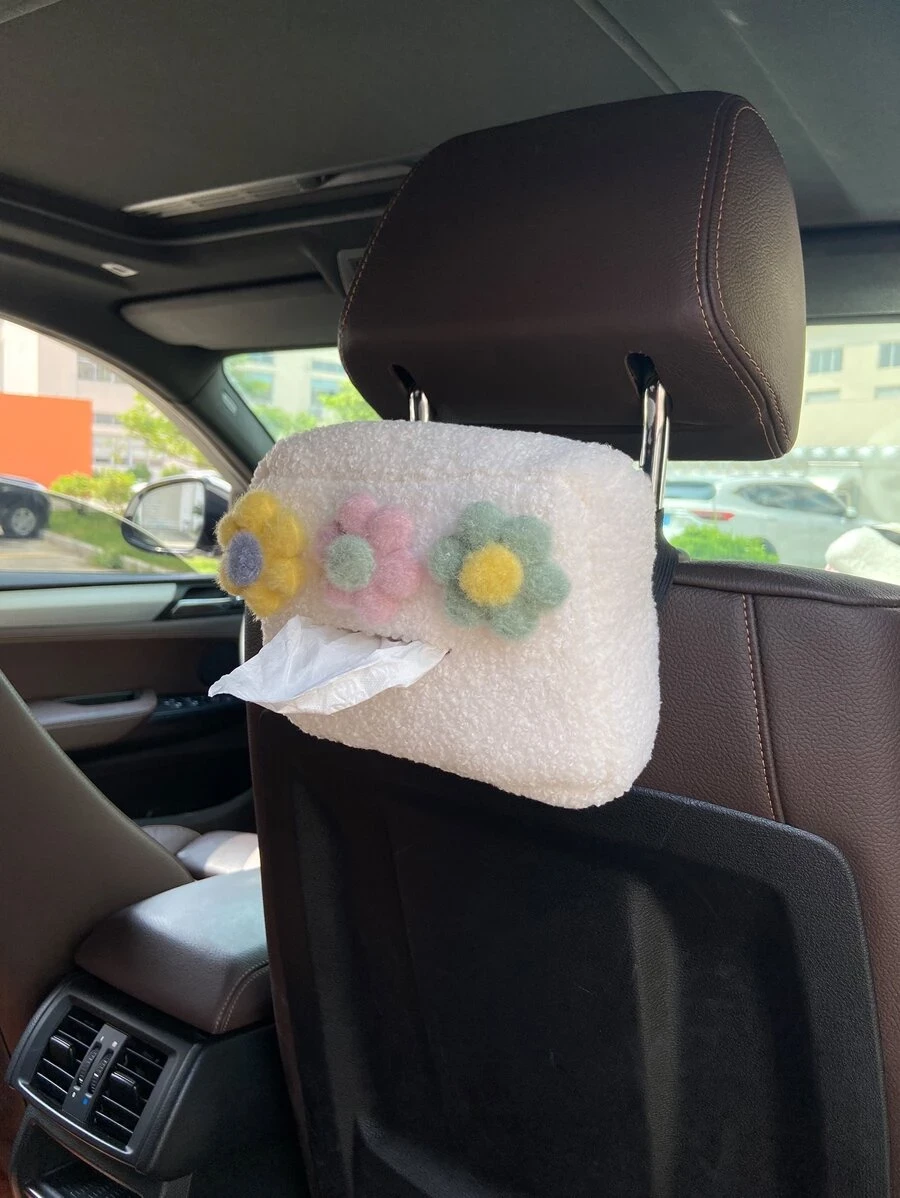 กล่องทิชชู่ ผ้าพลัฌ ตกแต่ง ดอกไม้ รถ nn-196