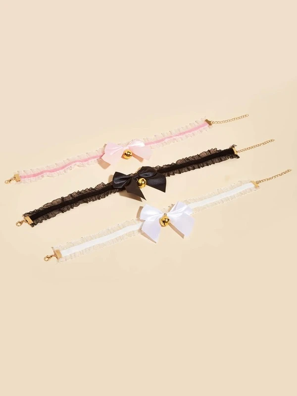 สร้อยคอ สำหรับสัตว์ หลากสี โบว์ 1 ชิ้น ม-98