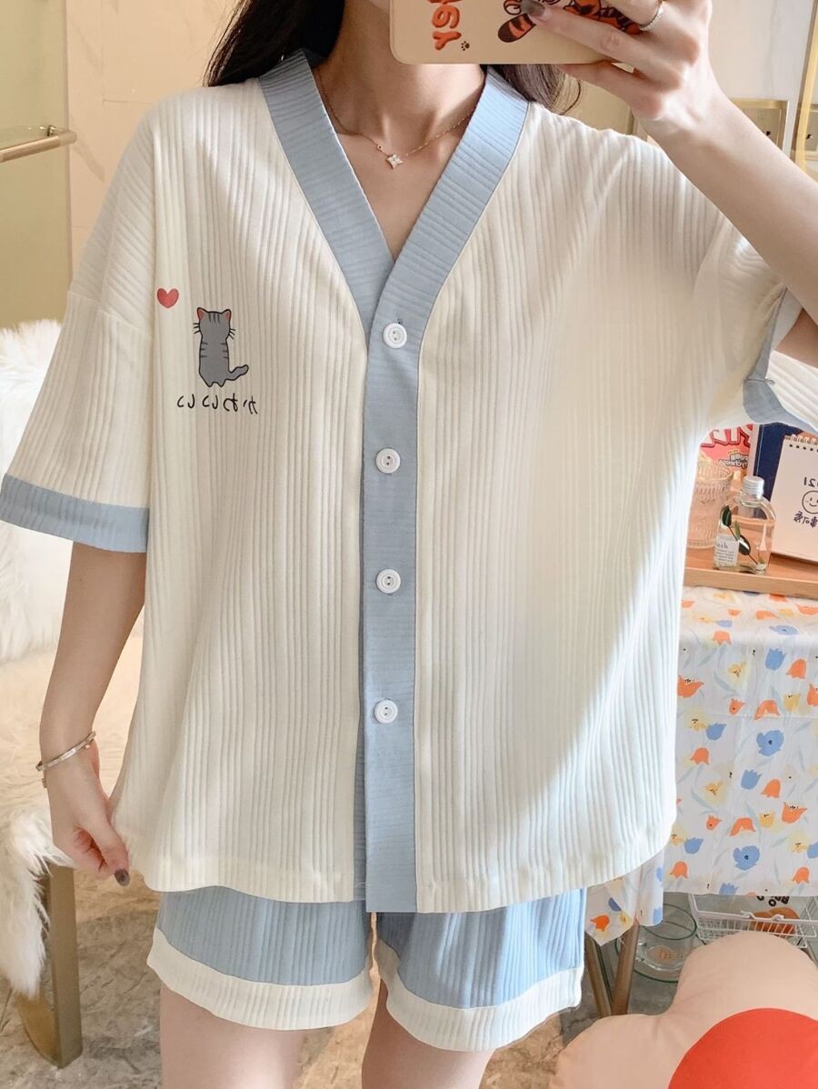 ชุดนอนผู้หญิง ชุดนอนแขนสั้นขาสั้น ชุดนอนแฟชั่น เซ็ตชุดนอน
