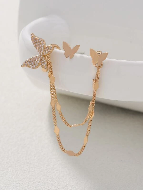 ต่างหู พลอยเทียม ตกแต่ง ผีเสื้อ e-51