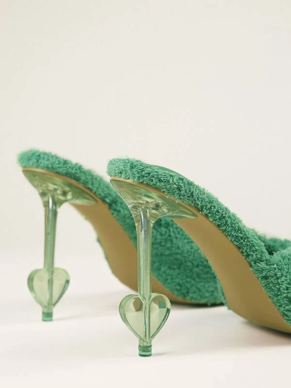 รองเท้าส้นสูง ปุย ทรงหัวเหลี่ยม โชว์หลัง Mule l-56