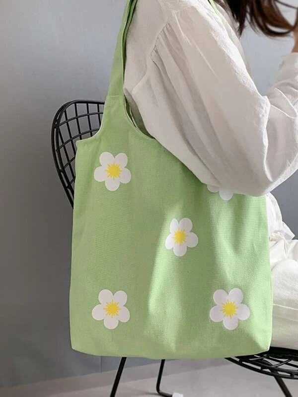 กระเป๋าช้อปปิ้ง ผ้าใบ พิมพ์ลาย ดอกไม้ n-100