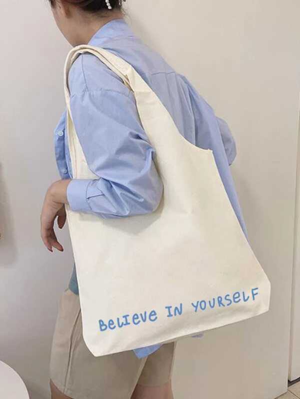 กระเป๋าช้อปปิ้ง ผ้าใบ พิมพ์ สโลแกน n-83