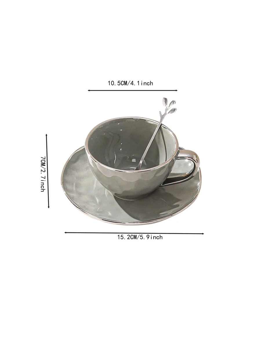 แก้วมัค 1 ชิ้น ลายคราม และ ที่รองแก้ว และ ช้อน นอร์ดิก สีเทา มีเท็กซ์เจอร์ แก้วกาแฟ และ ช้อน และ จาน สำหรับ โต๊ะ oo-120