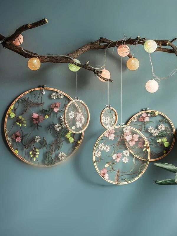 แขวนผนังเย็บปักถักร้อยดอกไม้ 4 ชิ้น ค-2