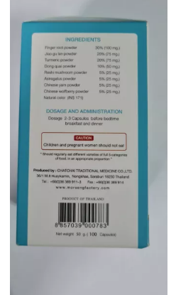 • โคยู-วันกระชายขาวและสมุนไพรอื่นๆ กว่า 20 ชนิด หมอเส็ง เช้า-เย็นครั้งละ 2 แคปซูล