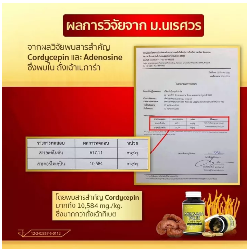 • **ส่วนประกอบสำคัญ: ใน 1 แคปซูล 500 mg. ประกอบด้วย ถั่งเช่า สกัดแท้ + สารสกัดจากเห็ดหลินจือ