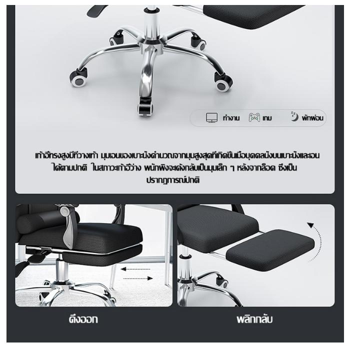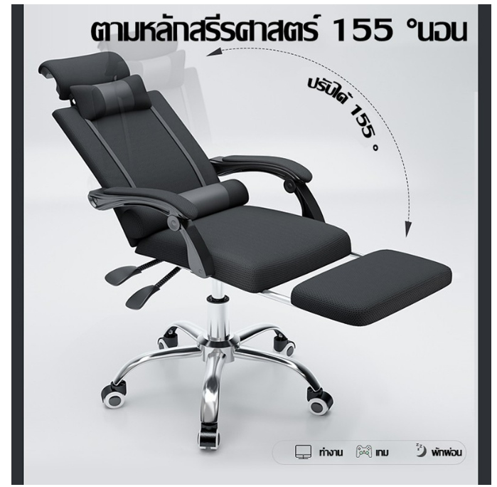 5.เก้าอี้ปรับเอนได้ 150 องศา หมุนได้ 360องศา