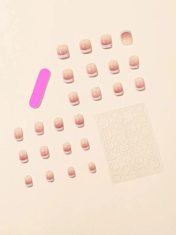 24 ชิ้น เล็บปลอม ทรงเหลี่ยม สั้น & ตะไบเล็บ 1 ชิ้น & เทป 1 แผ่น c-2