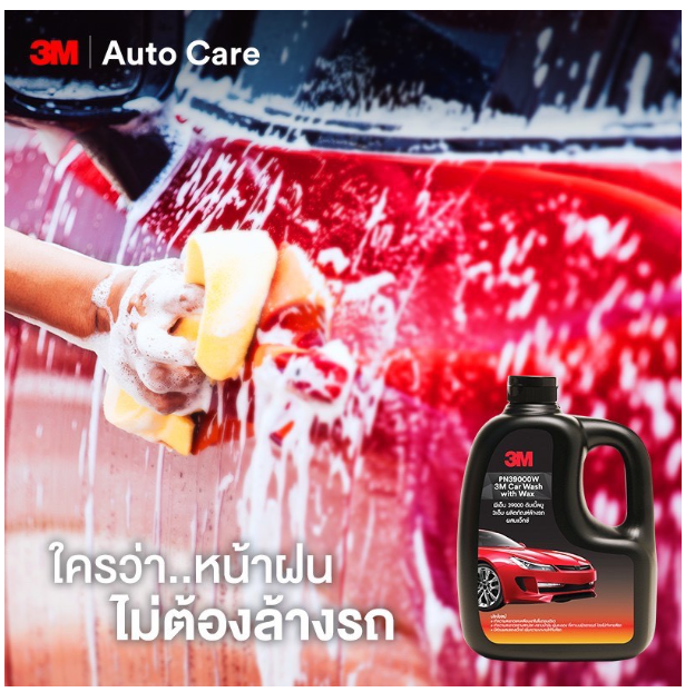 ✨ 3M CAR WASH WITH WAX 1000ML. แชมพูล้างรถ สูตรผสมแวกซ์ ทั้งล้างและเคลือบเงาในขั้นตอนเดียว ช่วยให้คนรักรถ แต่ไม่มีเวลา ดูแลรถคุณได้ง่ายขึ้น สูตรพัฒนาพิเศษสำหรับรถยนต์ช่วยขจัดคราบสกปรก คราบฝุ่นละออง คราบน้ำมัน โดยไม่ทำลายพื้นผิวรถยนต์ ด้วยนวัตกรรมพิเศษเฉพาะ 3M Technology Gloss Agent ช่วยเพิ่มความเงา ให้ความเงางามหลังการล้าง เพื่อให้รถสะอาด เงางาม ล้างและเช็ดออกง่าย ไม่ทิ้งคราบ