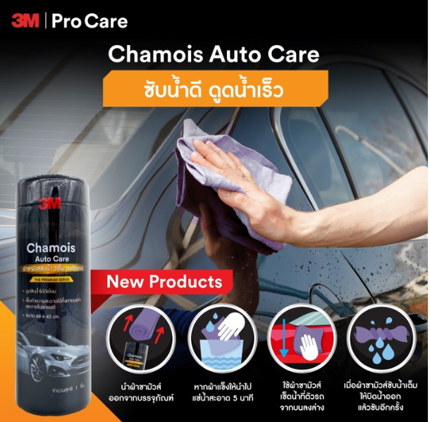 3M Car Wipe สามารถใช้ซับน้ำหลังจากการล้างรถและยังสามารถเช็ดทำความสะอาดภายนอกและภายในรถร่วมกับผลิตภัณฑ์ทำความสะอาดอื่นๆ ด้วยสูตรพิเศษ 3M Car Wipe นอกจากจะสามารถซับน้ำได้ดีแล้ว ยังคงทน ไม่ฉีกขาดง่าย