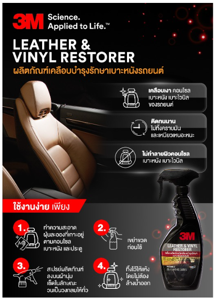 ? 3M ผลิตภัณฑ์เคลือบบำรุงรักษาเบาะหนังรถยนต์ Lather & Vinyl Restorer ขนาด 400มล. PN39040LT (1 ขวด)