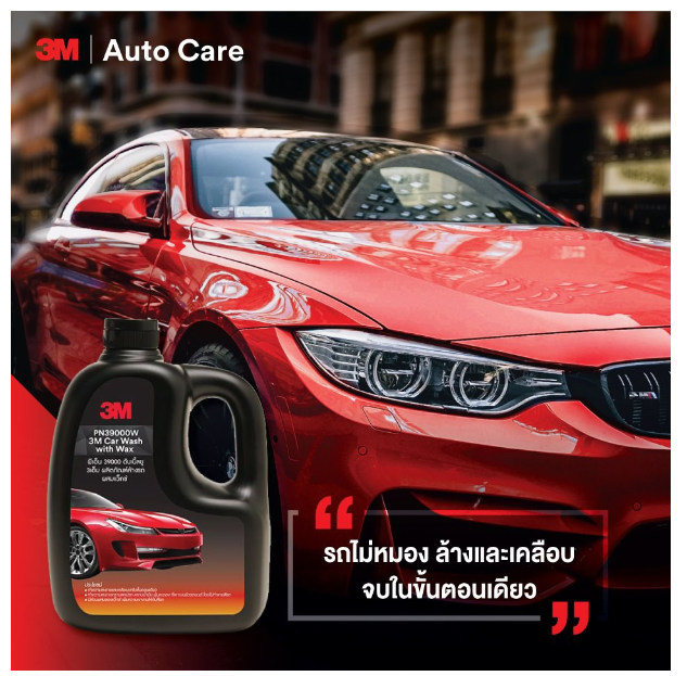 ✨ 3M CAR WASH WITH WAX 1000ML. แชมพูล้างรถ สูตรผสมแวกซ์ ทั้งล้างและเคลือบเงาในขั้นตอนเดียว ช่วยให้คนรักรถ แต่ไม่มีเวลา ดูแลรถคุณได้ง่ายขึ้น สูตรพัฒนาพิเศษสำหรับรถยนต์ช่วยขจัดคราบสกปรก คราบฝุ่นละออง คราบน้ำมัน โดยไม่ทำลายพื้นผิวรถยนต์ ด้วยนวัตกรรมพิเศษเฉพาะ 3M Technology Gloss Agent ช่วยเพิ่มความเงา ให้ความเงางามหลังการล้าง เพื่อให้รถสะอาด เงางาม ล้างและเช็ดออกง่าย ไม่ทิ้งคราบ