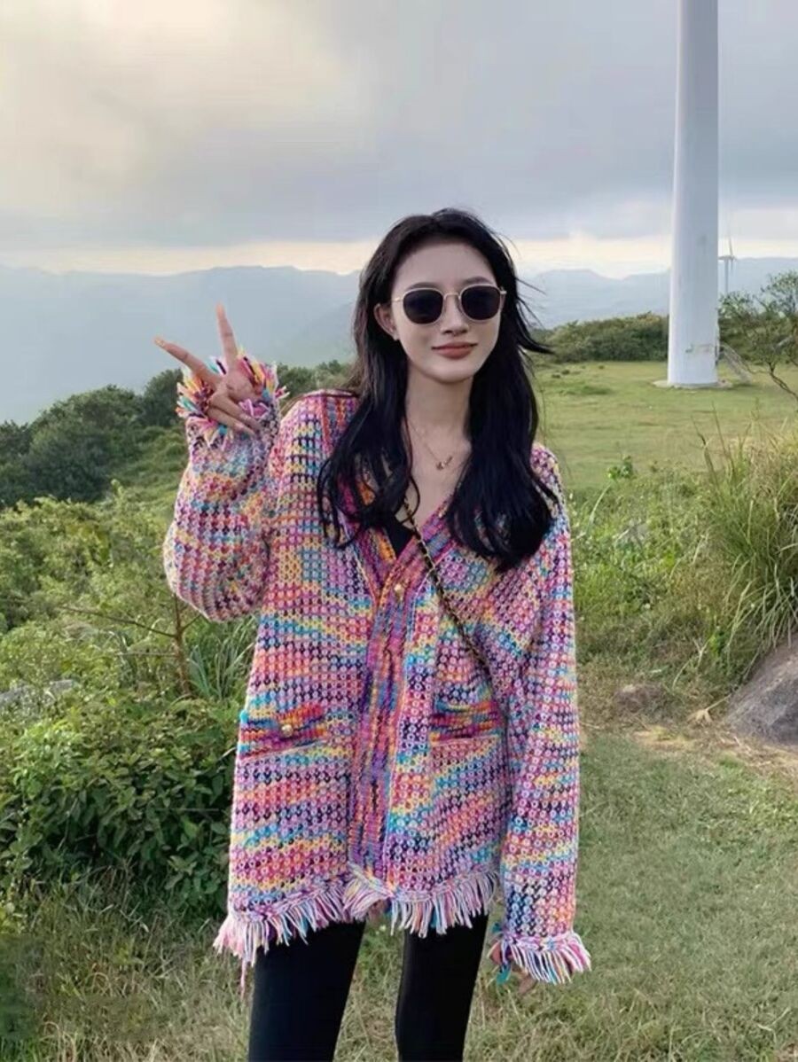 Cardigan โอเวอร์ไซส์สีเรนโบว์น่ารักมากกกก แต่งสีสายรุ้งคิ้วๆ โคเรียเกิร์ลลสุดด i-10
