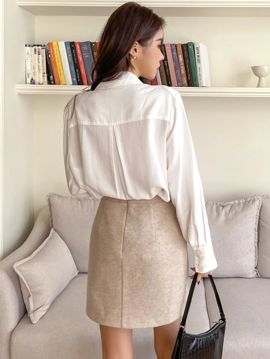 DAZY กระโปรง เอวสูง ผ้าวูลผสม jj-23