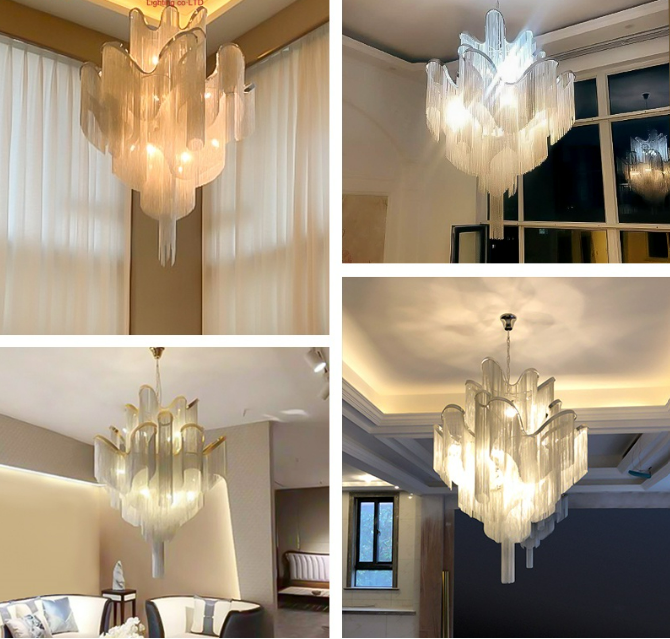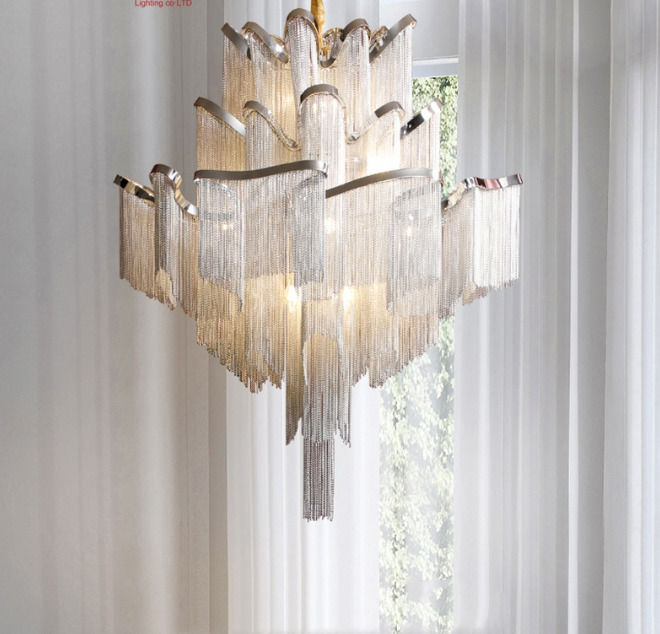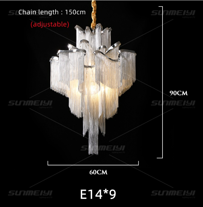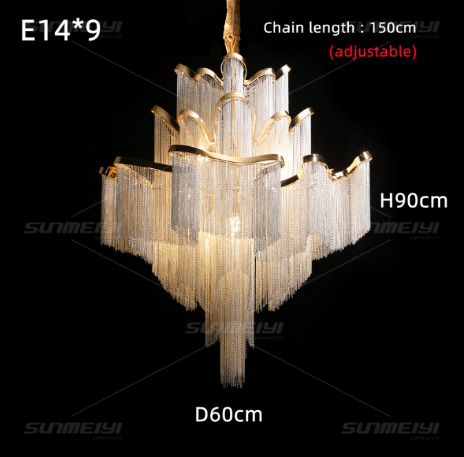 (F-003) คมไฟแขวน 3 ชั้น อลูมิเนียม พู่โซ่ ชุบโลหะ สไตล์โมเดิร์น สีเงิน / S ทอง / ดํา สําหรับห้องนั่งเล่น