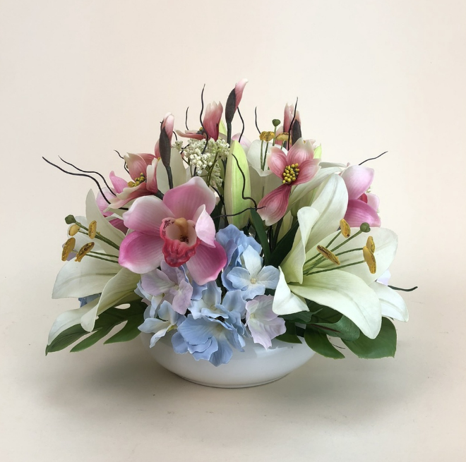- แจกันดอกไม้ประดิษฐ์รวมนานาพันธ์ สีสวยหวานสดใส