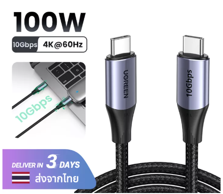 GE149-UGREEN 4K60Hz 10Gbps 100W สายชาร์จ สายชาร์จเร็ว USB C ถึง USB 3.1 Gen 2 Thunderbolt 3 สำหรับ iPad Pro 2022 MacBook Pro 2020 MacBook Air Nintendo Switch Fast USB C Cable Model: 80150