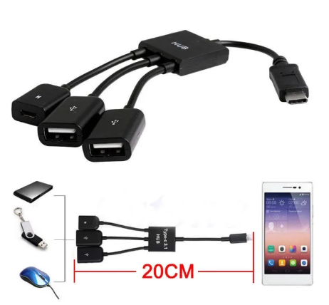 1x Type C Cable 3 in 1 USB C Type C OTG Host Cable Hub Cord Adapter Connector Splitter