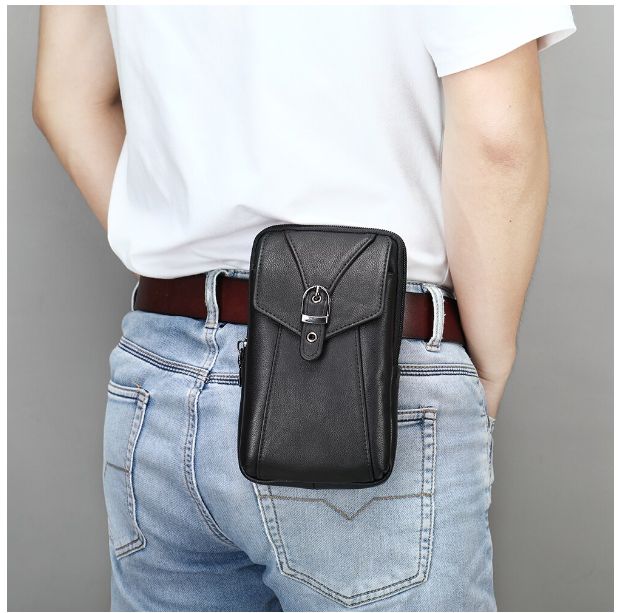 MVA แท้ผู้ชายกระเป๋าคาดอกหนังโทรศัพท์มือถือกุญแจบุหรี่ขนาดเล็กเอวแพ็คกระเป๋า Cowhide Hook ออกแบบกระเป๋าคาดเข็มขัดเอว7485
