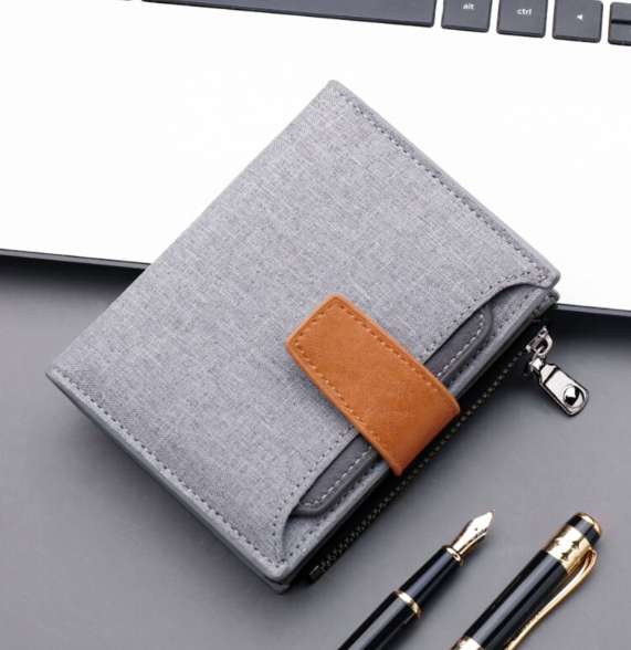 Men Wallet Canvas And PU Leather Gray/blue/black Short Male Purse Hasp/zipper Credit Card Holder Case Wallet For Men Money Bag