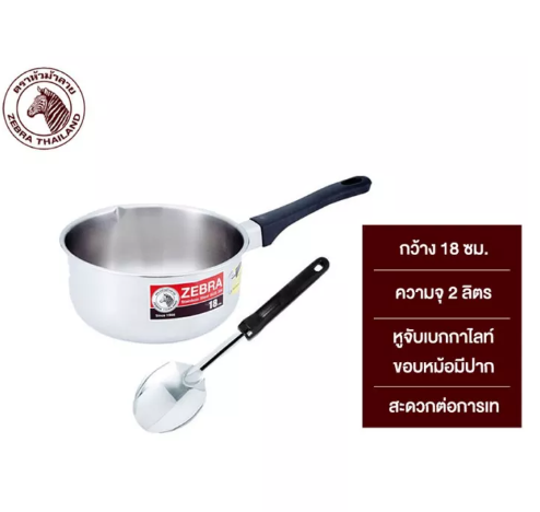 หม้อด้ามสแตนเลสอย่างดี ขนาด 18 ซม. ผลิตจากสเตนเลสเกรดคุณภาพSUS304 ทำความสะอาดง่ายแข็งแรงทนทาน มาตรฐาน Food Grade มาพร้อมกับทัพพีทำจากสเตนเลสออกแบบสวยงาม ทันสมัย