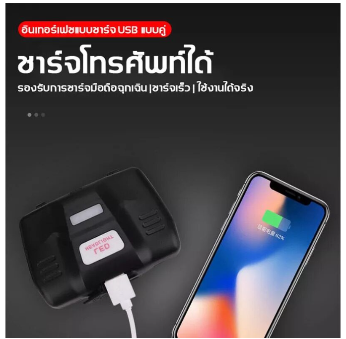 ✅ ไฟฉายคาดหน้าหัว 1ชิ้น, สายคาดหน้าผาก 1 ชิ้น ,สายusb 1 ตัว