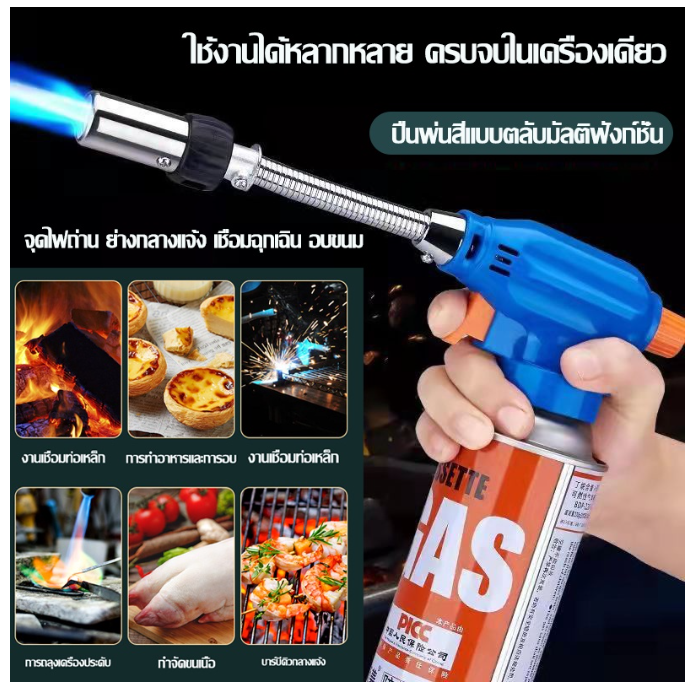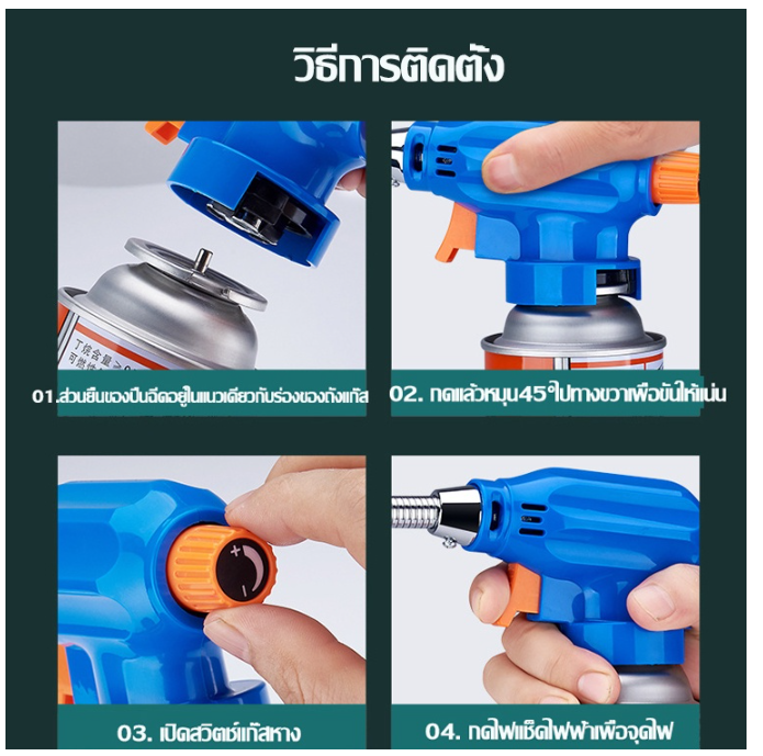 หัวพ่นแก๊ส ใช้งานง่ายเพียงแค่ต่อหัวพ่นเข้ากับแก๊สกระป๋อง ก็สามารถใช้งานได้ทันที