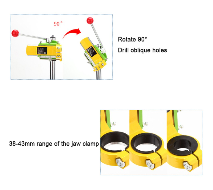 1. หมุนได้ 90° เพื่อเจาะรูเอียง ขายึดทำจากอะลูมิเนียมอัลลอย + วัสดุเหล็กหล่อคุณภาพสูง