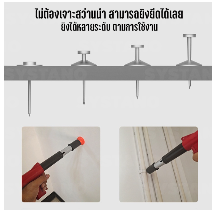 ไม่ต้องเจาะสว่านนำ สามารถยิงยึดได้เลย สำหรับไม้ เหล็กแผ่น ผนังปูน พลาสติก หรืออื่นๆ