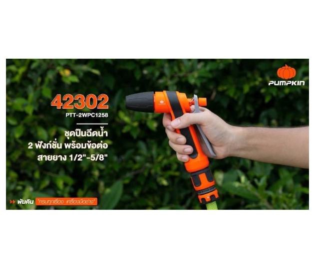 ⭐ PUMPKIN ชุดปืนฉีดน้ำ 2 ฟังก์ชั่น พร้อมข้อต่อสายยาง 1/2"-5/8" PTT-2WPC1258