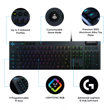ข้อมูลเฉพาะของ Logitech G813 LIGHTSYNC RGB MECHANICAL Gaming Keyboard (คีย์บอร์ดเกมมิ่ง)